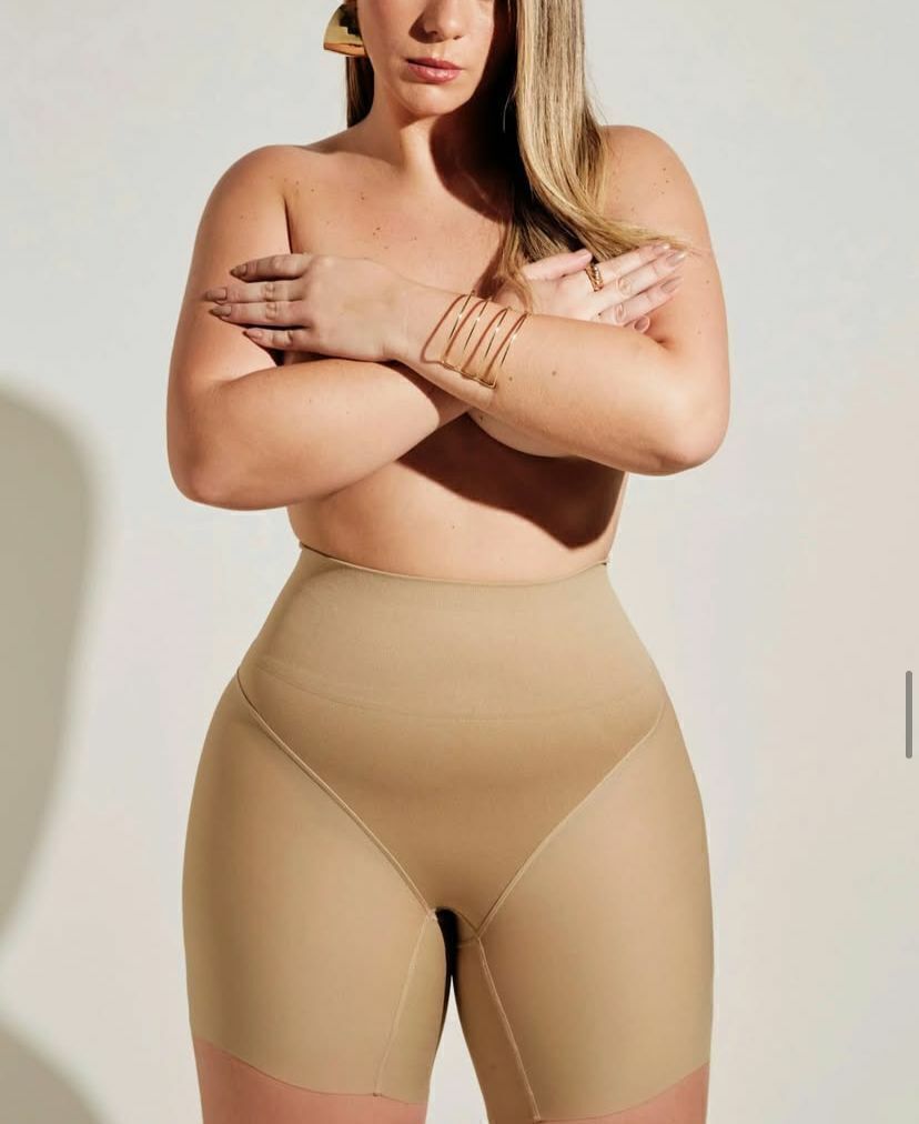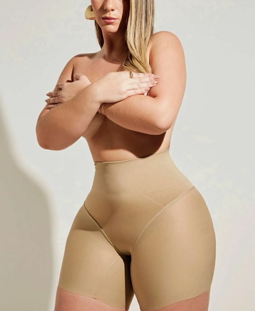 Bermuda Modeladora Invisible Laser Bege conta com forro de algodão. Esta peça conta com compressão no abdômen formada por microcanelados que em combinação ao elastano suavizam a linha da cintura promovendo compressão uniforme e proporcionando o efeito chapa barriga. Este produto conta com forro de algodão. O diferencial desta peça esta no acabamento da bermuda em tecido muito leve (poliamida com elastano), repare que o acabamento da bermuda é realizado em corte a laser em formato ondulado, uma tecnologia que permite a invisibilidade da peça quando usado com roupas justas. O acabamento ondulado garante também que a peça não enrole durante o uso. A modelagem da bermuda modeladora também é uma aliada ao conforto, pois evita o atrito entre as pernas. A Modelagem Bermuda também é especialmente pensada para quem deseja máximo conforto e liberdade no uso de vestidos longos, peças de tecidos leves ou mais justas.