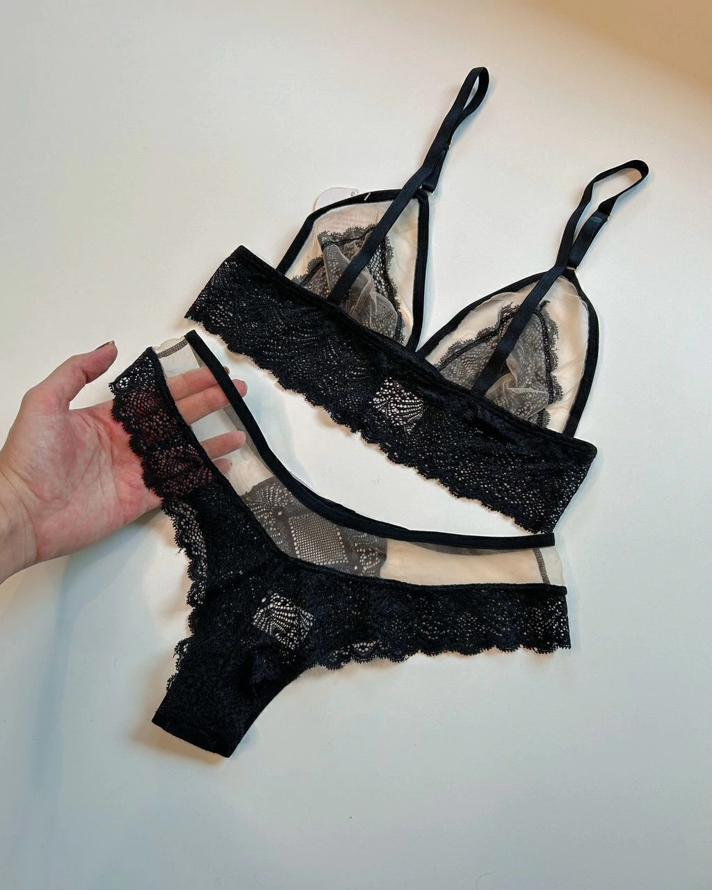 Delicado e irresistível, o conjunto Encanto combina a transparência do tule com o charme da renda em um design cheio de feminilidade. O sutiã sem fecho nas costas oferece conforto e praticidade, com alças reguláveis que garantem o caimento perfeito. A calcinha semi-fio complementa o visual com um toque de sensualidade na medida certa. Ideal para quem ama peças leves, que valorizam as curvas com sutileza e elegância.